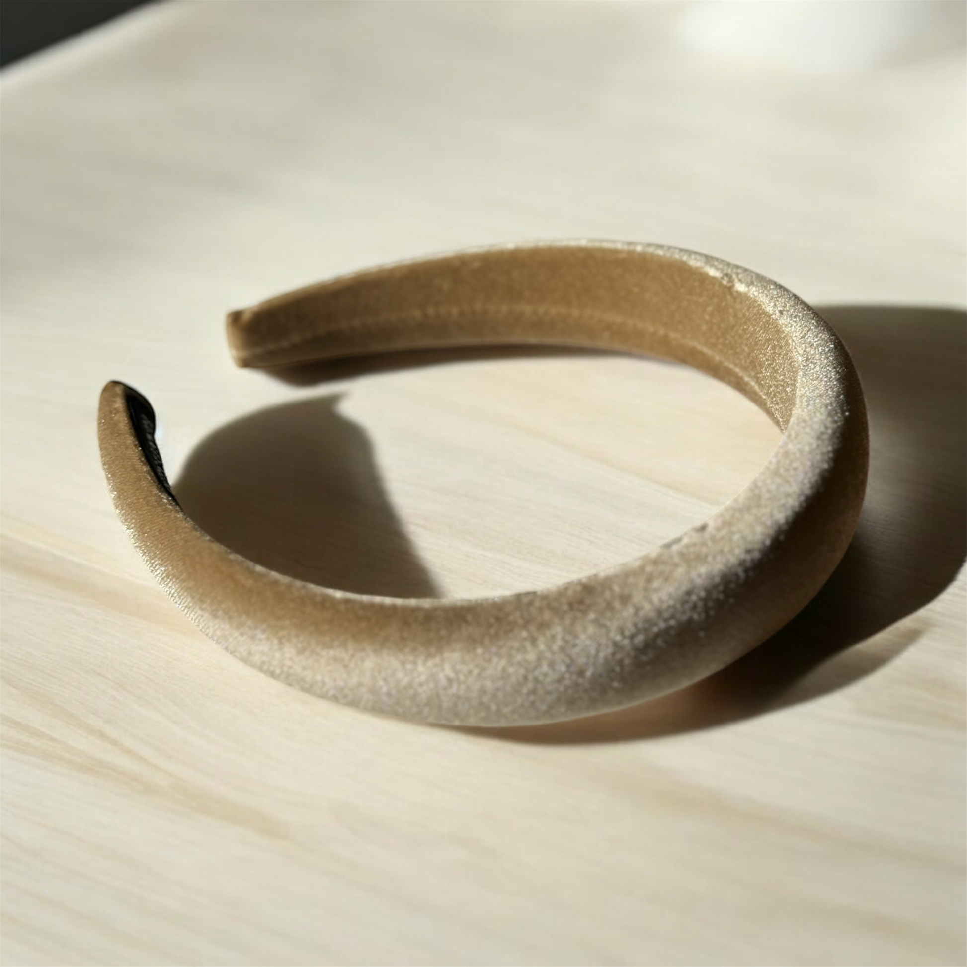 Khaki Gold Velvet Headband: Luxurious & Soft Hair Accessory