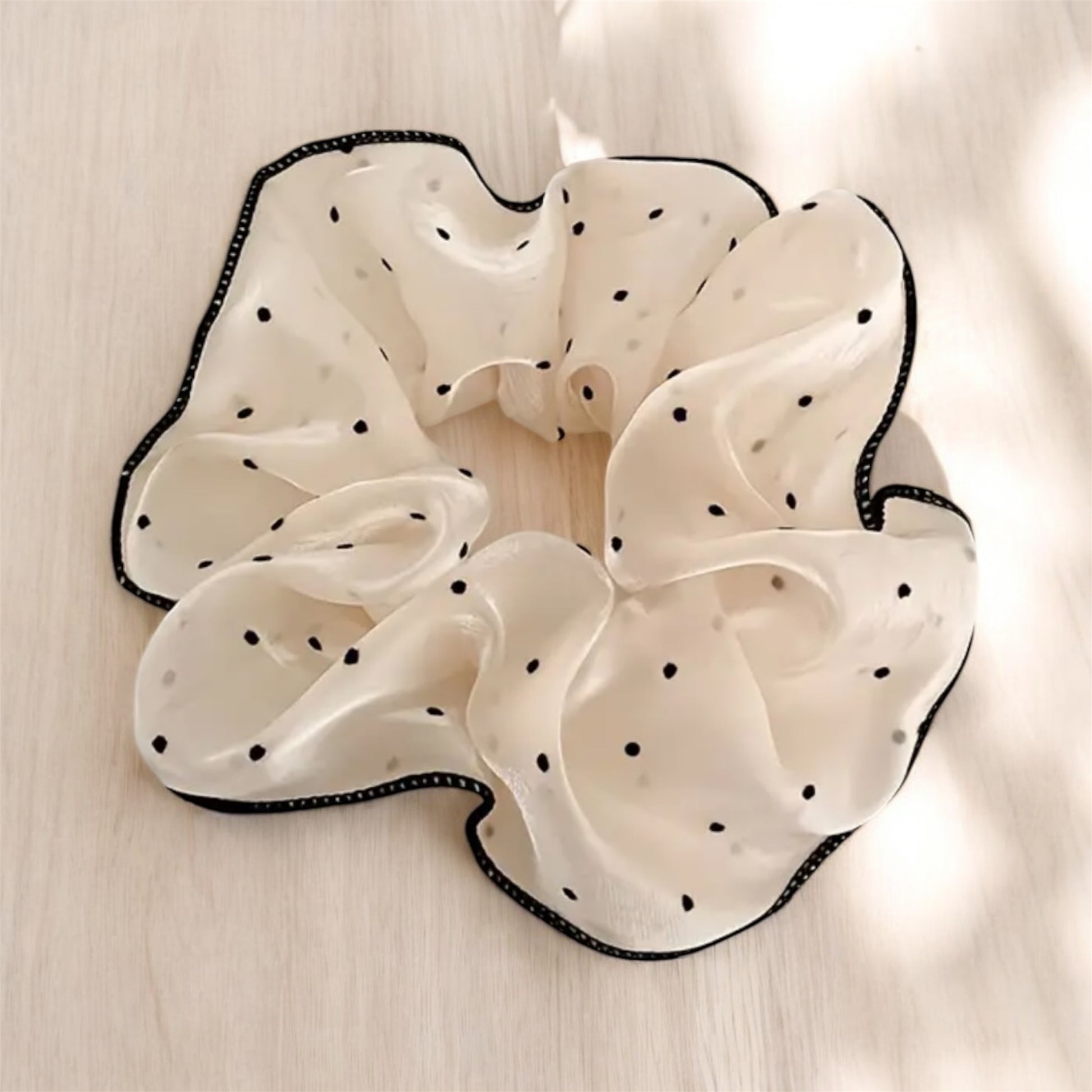 Add a touch of Parisian elegance to your hairstyle with this set of three satin hair scrunchies in a playful polka dot design. Soft, gentle on hair, and durable, they’re perfect for ponytails, buns, or half-up styles. Stylish and versatile, they make everyday hairstyles effortlessly chic.