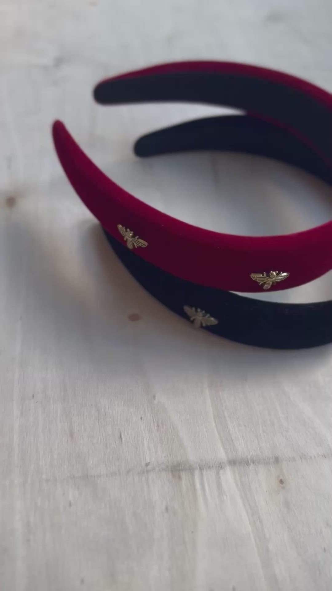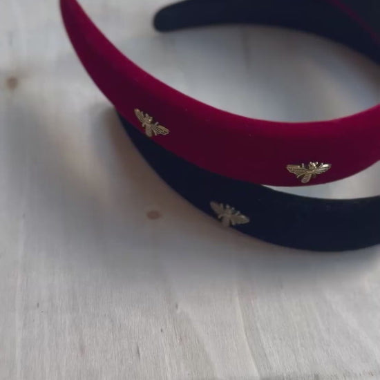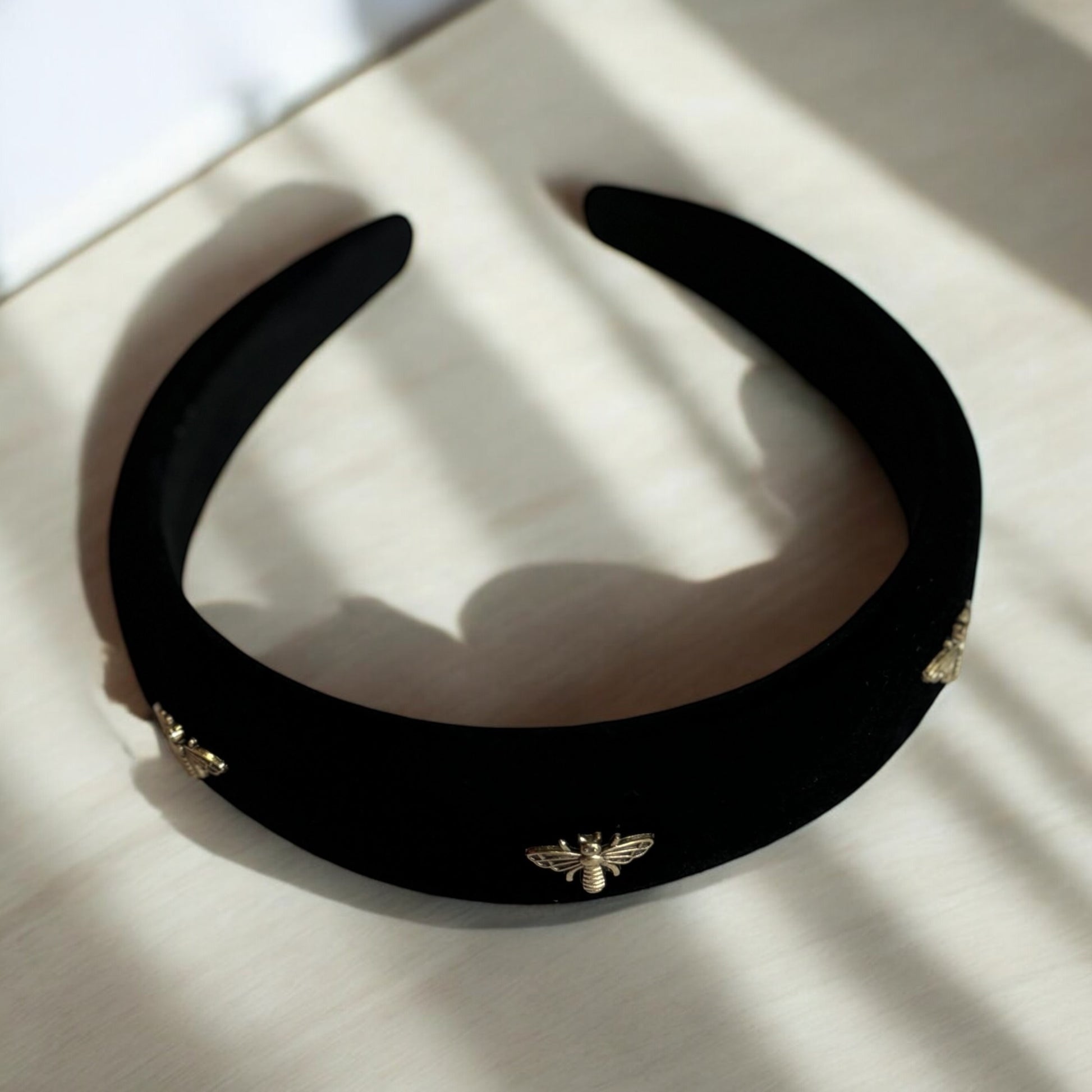 Golden Buzz Headband – Black Velvet with Gold Bee Accents